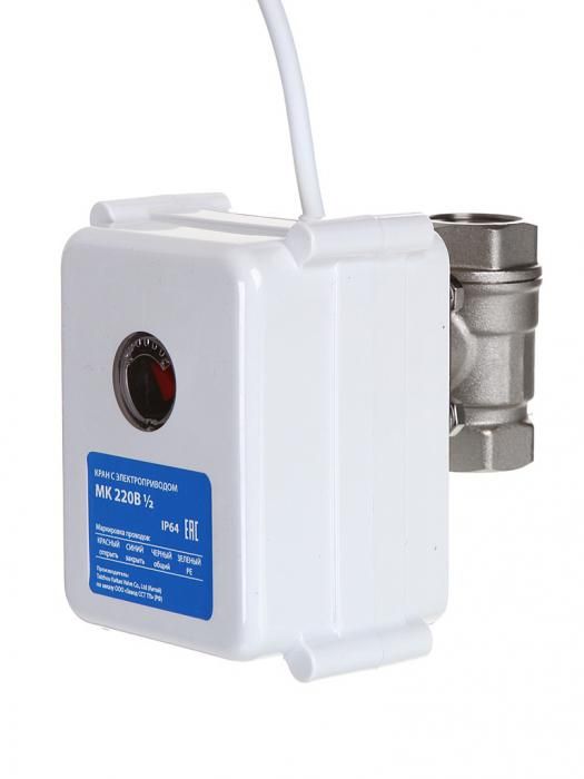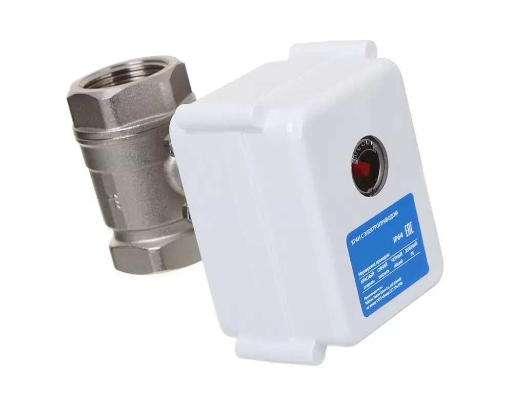 Кран оснащен электроприводом и устанавливается в системах защиты от протечек воды. Кран выполнен из горячекованной латуни CW617N. Он прочный и долговечный, что исключает возможность появления поломок и дефектов внутри металла. Мощные металлические шестеренки гарантируют бесперебойную работу крана даже при закисании.
