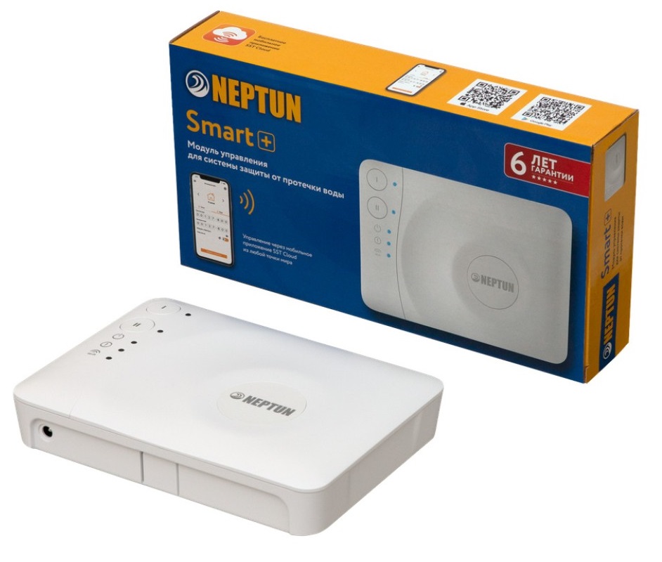 Модуль управления для системы Neptun Smart+ Tuya. Данная модификация выполняет функцию центрального контроллера в системах защиты от протечки воды. Передаёт сигналы от датчиков контроля к установленным в системах водоснабжения кранам, блокирующим дальнейшую подачу воды. Обеспечивает полноценный контроль над двумя разными стояками водоснабжения. Настройка, мониторинг и управление обеспечиваются посредством приложений TUYA Smart Home.