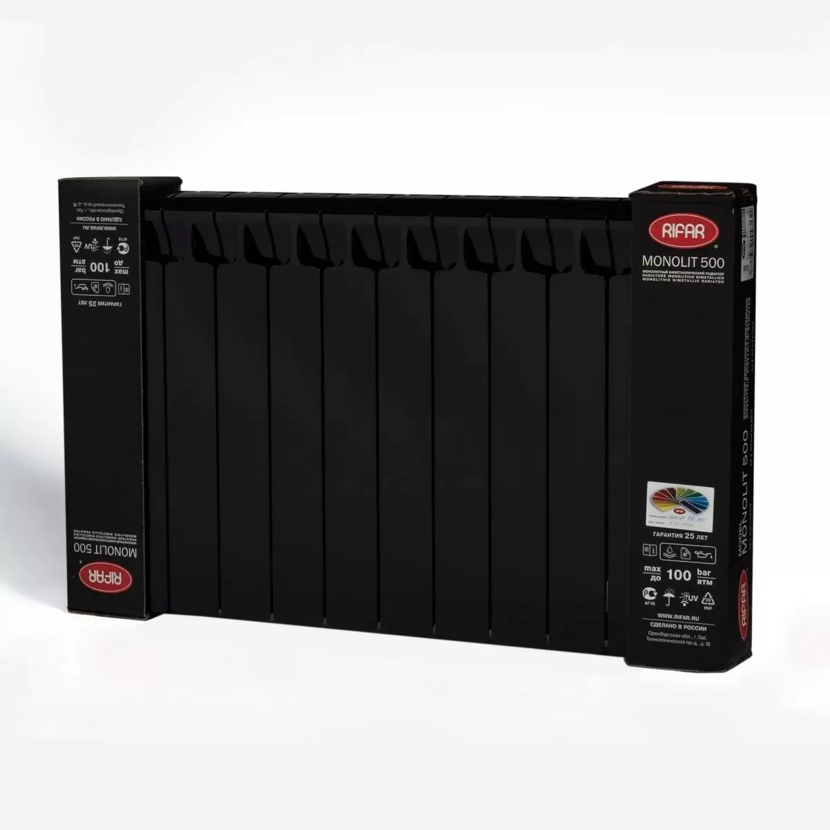 Подтверждая высокие конструктивные характеристики своих радиаторов и благодаря системе контроля качества, действующей на предприятии, компания РИФАР устанавливает гарантийный срок на радиаторы модели MONOLIT 25 лет при соблюдении условий монтажа и эксплуатации.