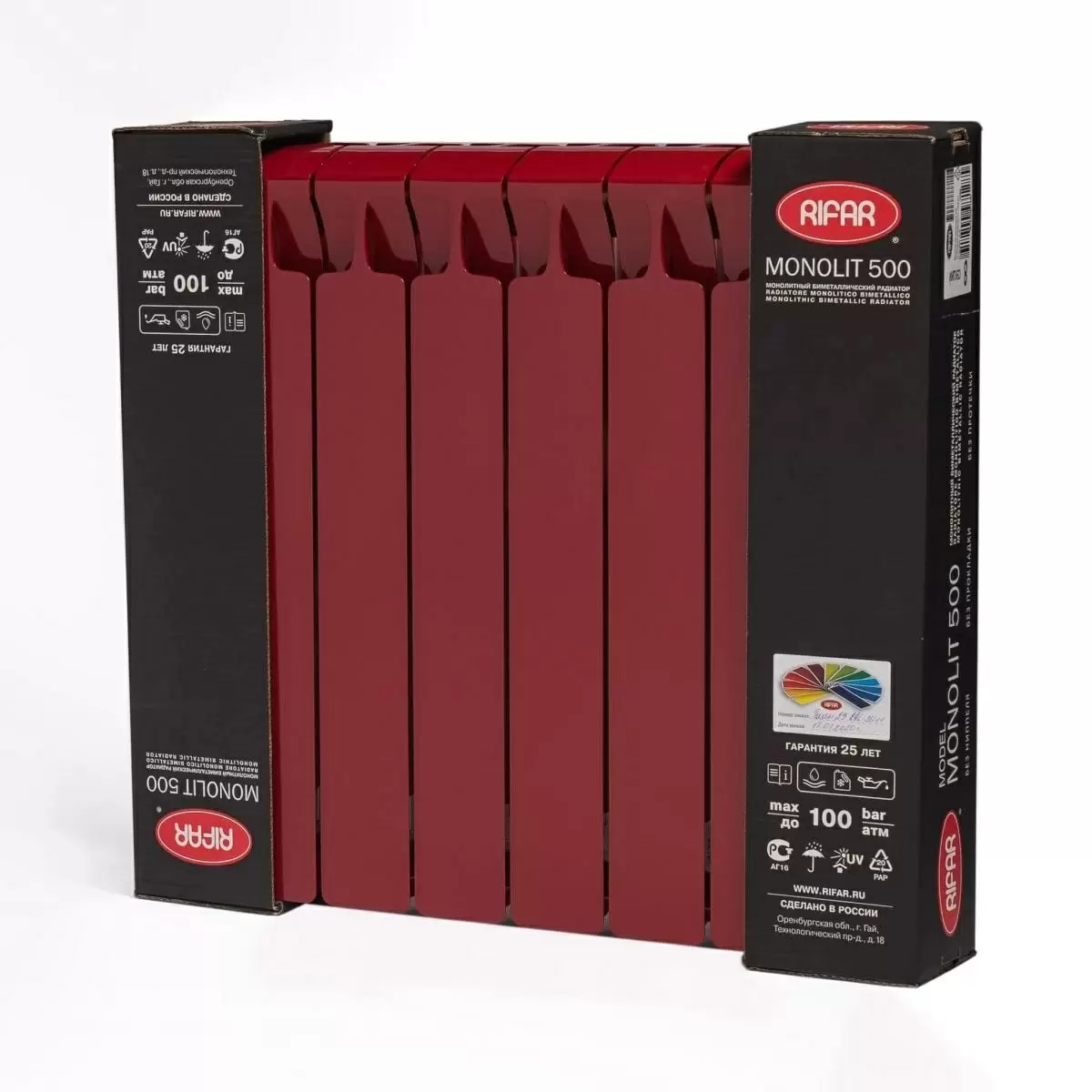 Подтверждая высокие конструктивные характеристики своих радиаторов и благодаря системе контроля качества, действующей на предприятии, компания РИФАР устанавливает гарантийный срок на радиаторы модели MONOLIT 25 лет при соблюдении условий монтажа и эксплуатации.