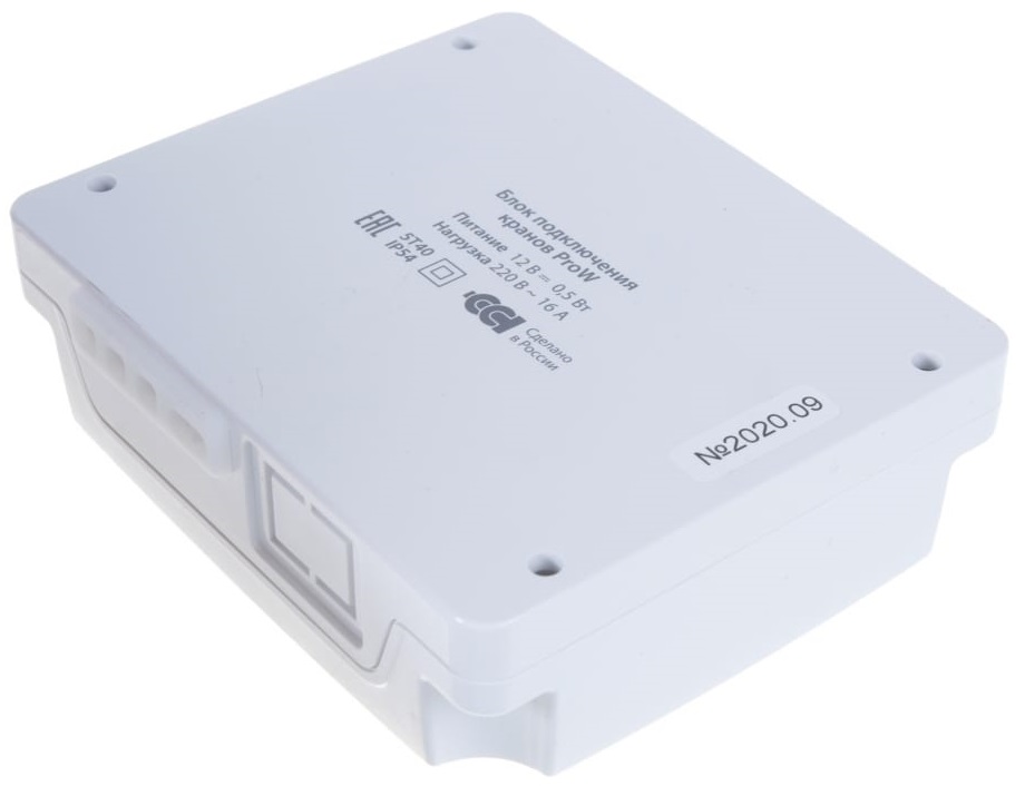 Управляющее устройство нового поколения для систем контроля протечек воды. Предназначен для обработки сигналов от датчиков контроля протечки воды и выдачи управляющего сигнала на исполнительное устройство, перекрывающее воду. Обеспечивает световое и звуковое оповещение об аварии. Накладной монтаж. Предназначен для бытового применения.
