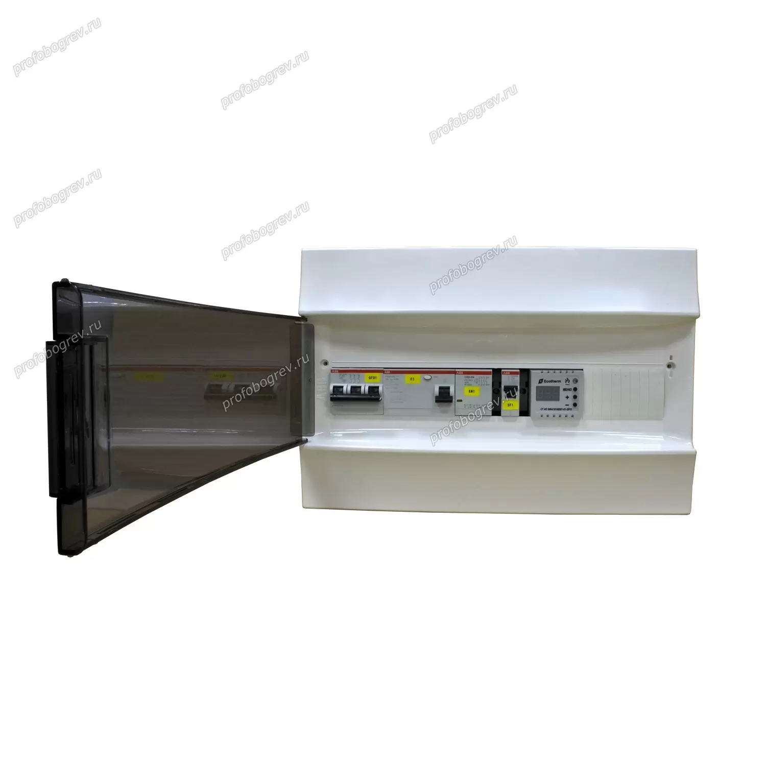 Шкаф управления системой кабельного обогрева для простых терморегуляторов, работающих по датчику температуры воздуха.