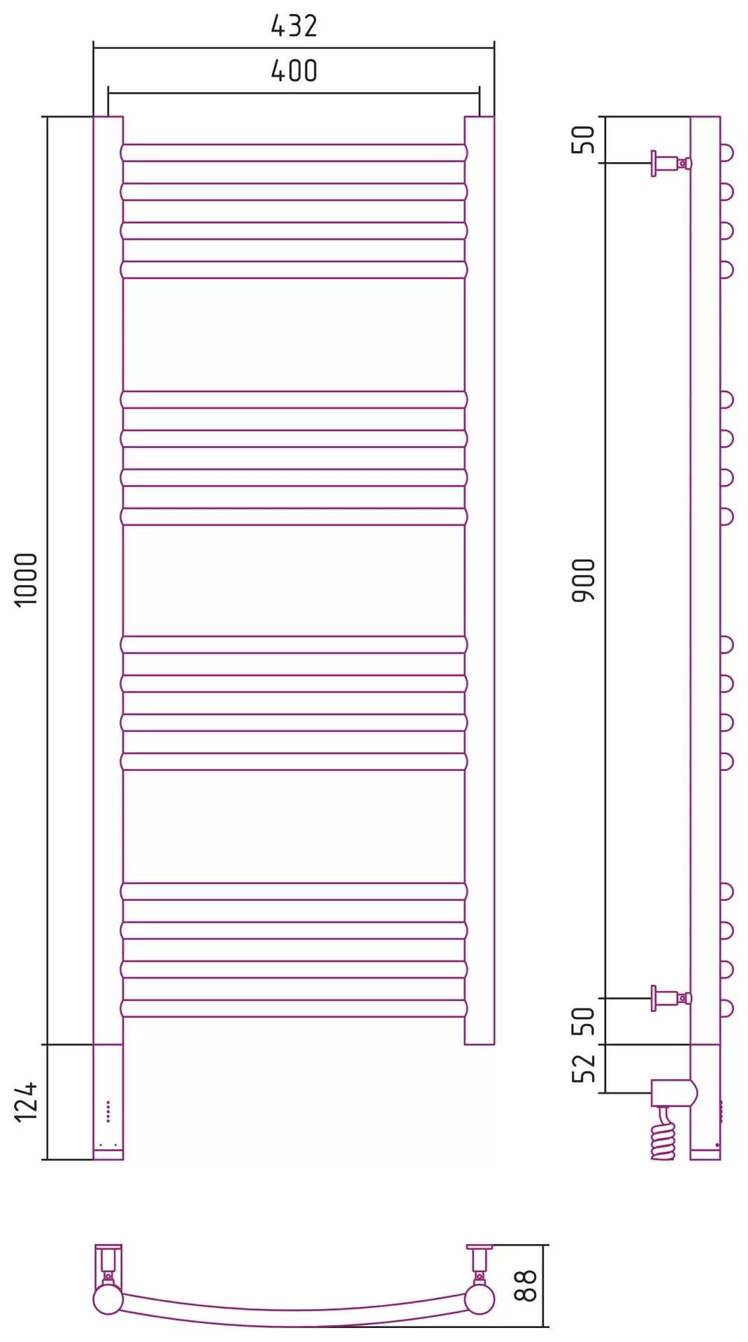 Полотенцесушитель электрический Сунержа Богема 3.0 выгнутая 1000х400 МЭМ левый Без покрытия