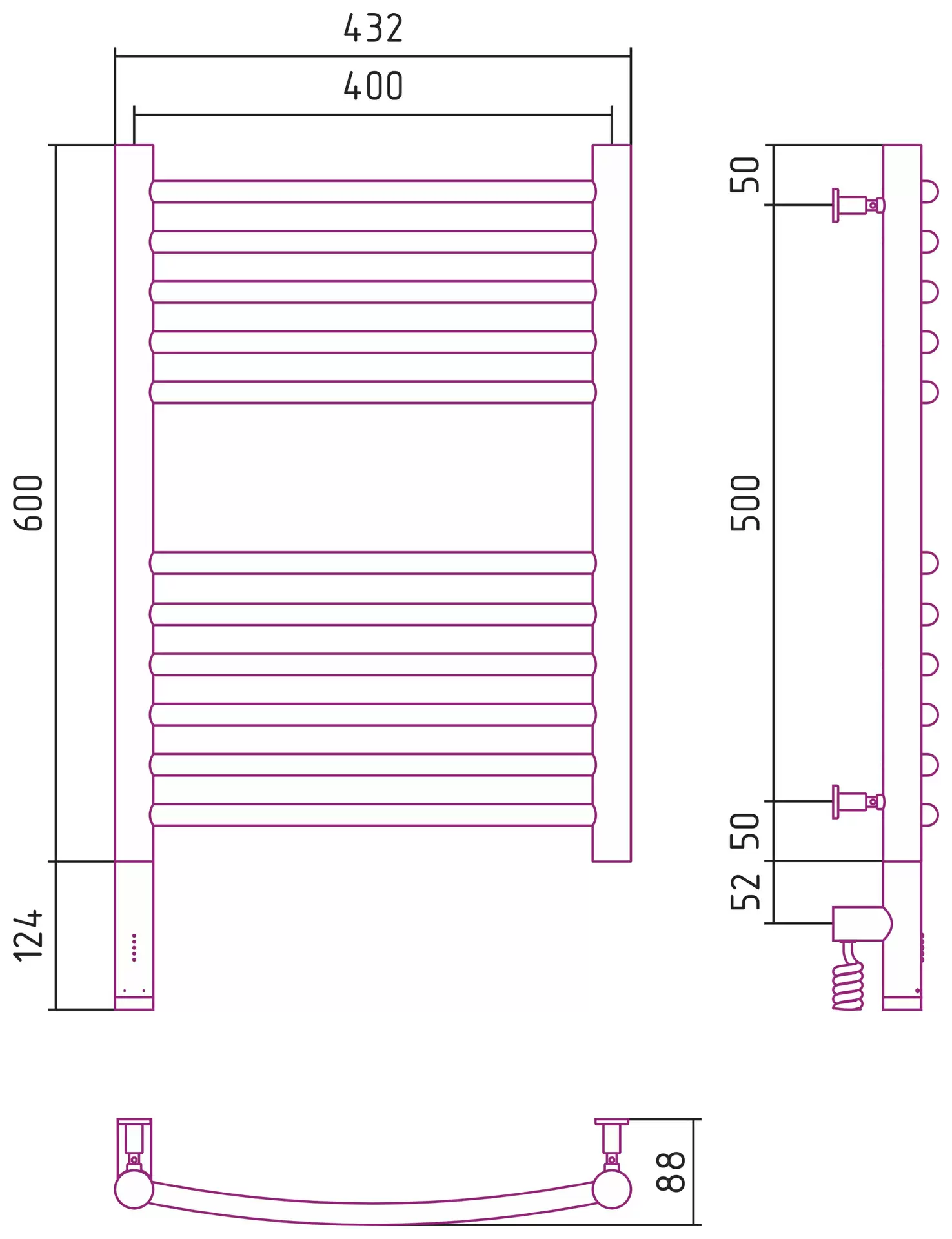 Полотенцесушитель электрический Сунержа Богема 3.0 выгнутая 600х400 МЭМ левый Состаренная латунь