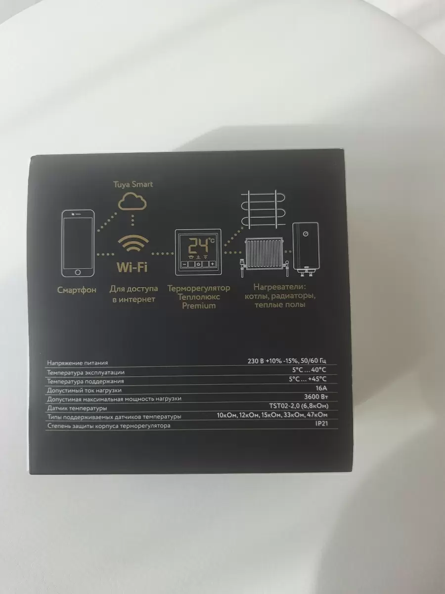 - Удаленное управление обогревом пола осуществляется по сети Wi-Fi напрямую со смартфона с установленным приложением TUYA или через домашний Wi-Fi роутер (в комплект поставки не входит).
