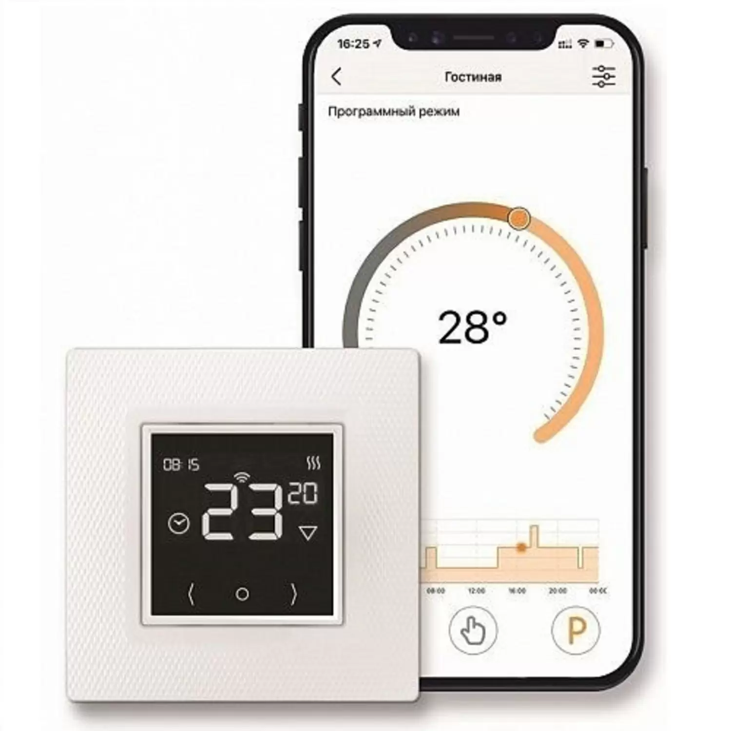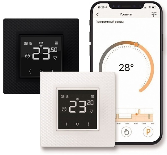 - Двойное управление обогревом: со смартфона или экрана терморегулятора