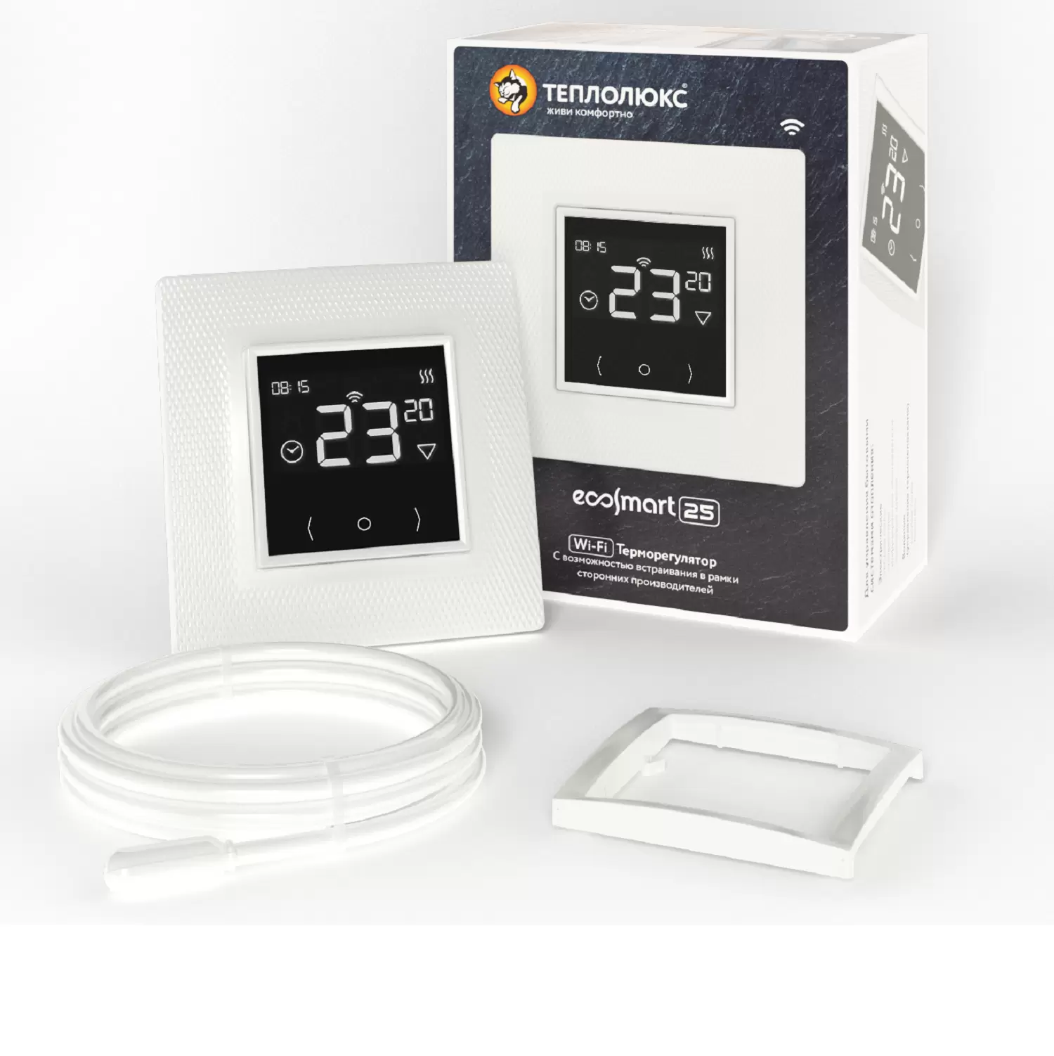 "Теплолюкс" EcoSmart 25 - программируемый сенсорный терморегулятор на Wi-Fi предназначен для управления бытовыми электрическими системами отопления – теплые полы, конвекторы, полотенцесушители.