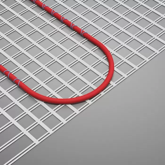 - Инновационная технология пришивного крепления кабеля к сетке с двойным усиленным плетением обеспечивает более стабильную структуру мата, упрощает монтаж, снижая риски локального перегрева вследствие случайного смещения кабеля;